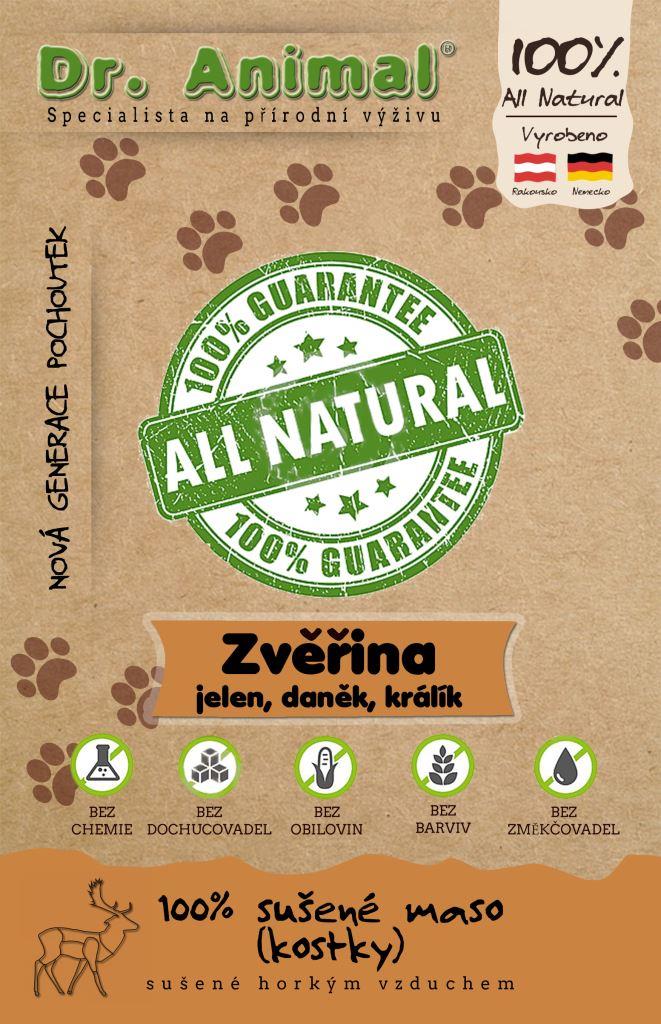 Popis produktu100% Přírodní pamlsek pro psy. Zvěřinové masové kostky obsahují 100% čistého masa (jelen, daněk, králík), nic jiného!.Je to 4A výrobek, což znamená: narozen, žijící, poražen a zpracován v Rakousku.