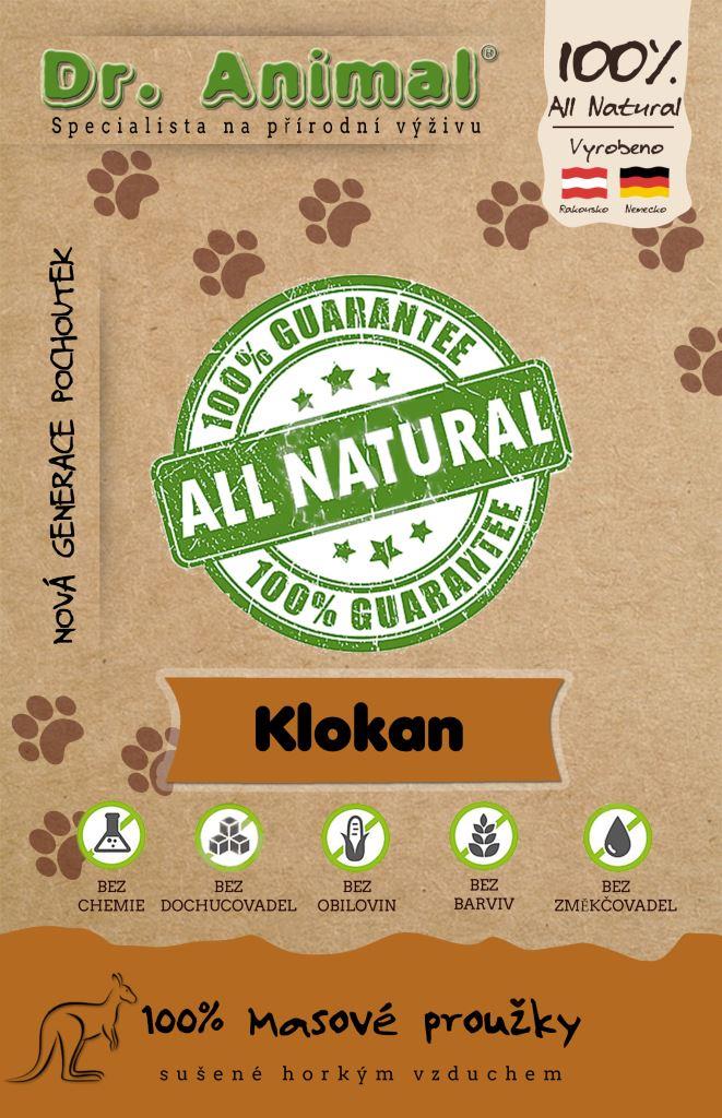100% Přírodní pamlsek pro psy. 100g klokaní masové proužky obsahují 100% čistého masa, nic jiného!. Je to 4A výrobek, což znamená: narozen, žijící, poražen a zpracován v Rakousku. Na klokaní farmě.